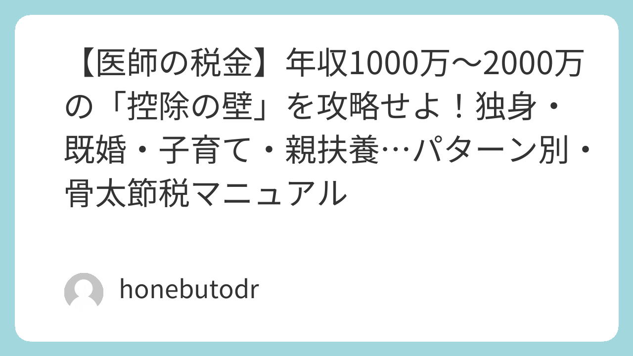その買うを、もっとハッピーに。|ハピタス 【医師の税金】年収1000万〜2000万の「控除の壁」を攻略せよ!パターン別・骨太節税マニュアル【ほねぶとDr.】