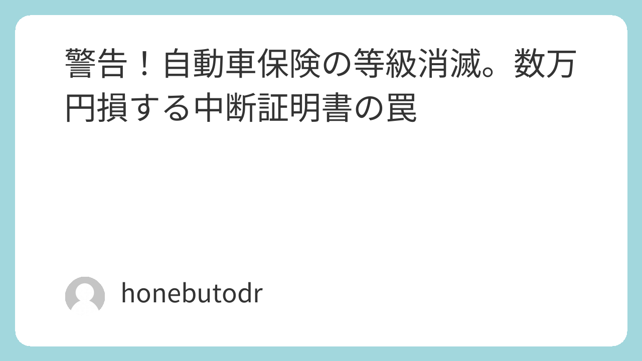 警告!自動車保険の等級消滅。数万円損する中断証明書の罠