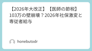 【2026年大改正】【医師の節税】103万の壁崩壊?2026年社保激変と専従者給与